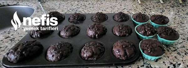 - Harcın içine de boldan damla çikolataları eklemeyi unutmadığımız üzere kalıplara döktükten sonrada her birinin üzerine olacak halde damla çikolata serpiyoruz.