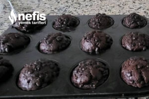- Harcın içine de boldan damla çikolataları eklemeyi unutmadığımız üzere kalıplara döktükten sonrada her birinin üzerine olacak halde damla çikolata serpiyoruz.