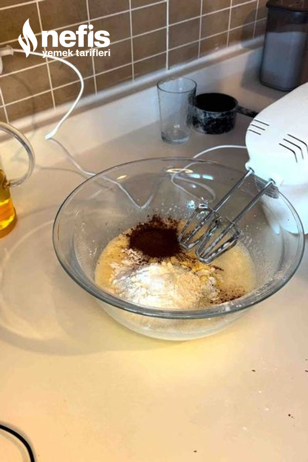 2. Un, kabartma tozu, vanilin ve kakaoyu da ekleyip son defa çırptıktan sonra yağladığımız kek kalıbına harcımızı döküp 180 derece fırında yaklaşık 30 dakika pişiriyoruz.