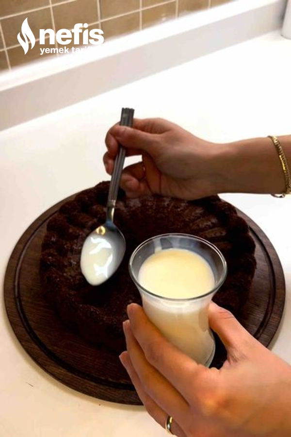 4. Fırından çıkan kekimiz ılıyana kadar bekliyoruz sonrasında 1 çay bardağı soğuk sütle ıslatıyoruz.