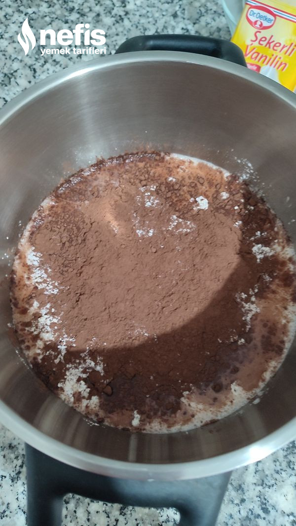 - Ocağımızı kapatalım ve muhallebimizin içine bitter çikolata atalım oda eriyen kadar karıştıralım.