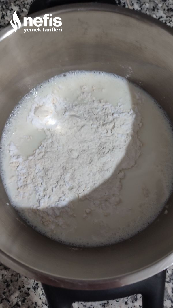 - Kaynayan muhallebimize margarin ve şekerli vanilini ekleyip margarin eriyen kadar tekrar karıştıralım.