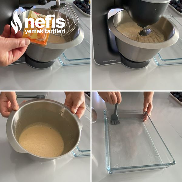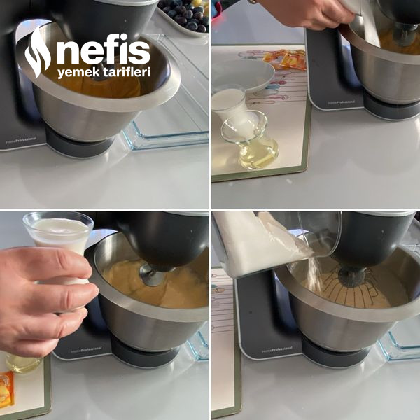 - Üzerine sıvı yağını, sütünü, unu, kabartma tozu ve vanilya ek ederek krema haline getirin.