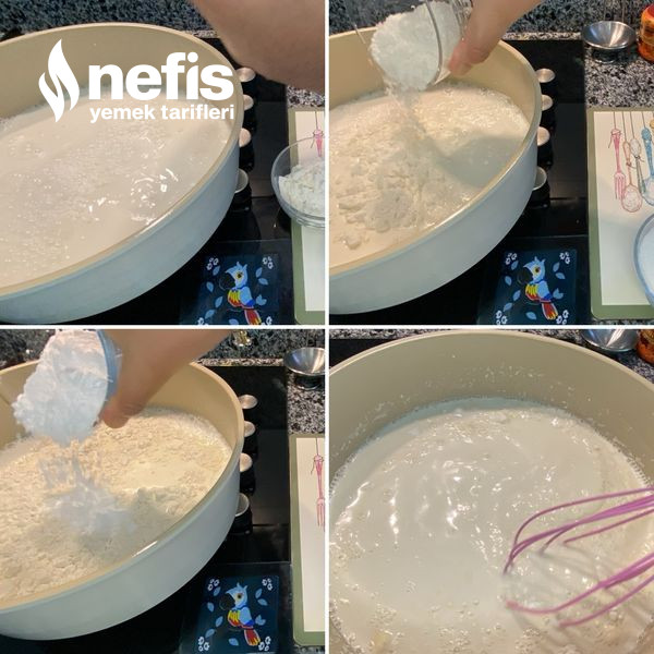 - Nişastayı, ununu, şekerini katıp karıştırarak muhallebi kıvamına gelinceye kadar karıştıralım.