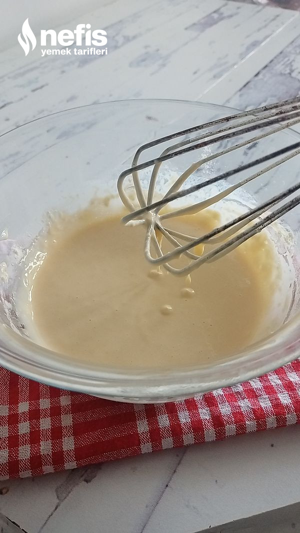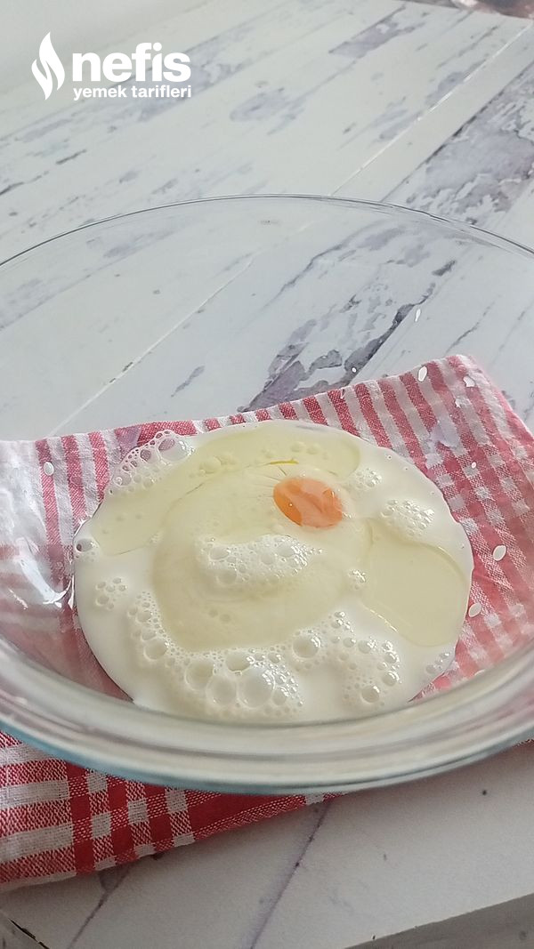 1. Yumurta, süt ve yağı çırpma teli yardımıyla karıştırın.