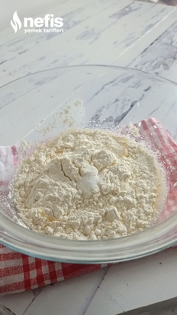 2. Daha sonra kuru gereçleri ekleyip topak kalmayacak halde tekrar karıştırın.