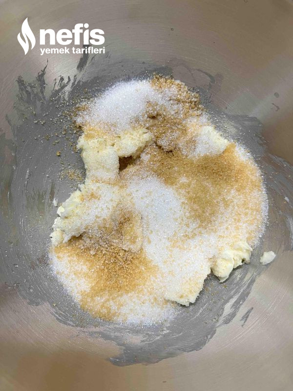 1. Tereyağı, esmer şeker ve beyaz şekeri bir kapta çırpıcı ile karıştırın.