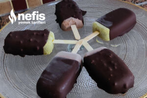 - Dondurma kalıplarına eşit ölçüde dökün. Ben sıkma torbası ile döktüm daha kolay oluyor. 1 gece buzdolabında bekletin. Sonra eritilmiş çikolataya bandırın. 2-3 saat buzdolabında bekletip, tüketin.