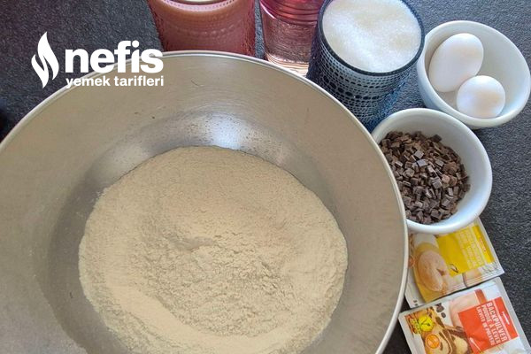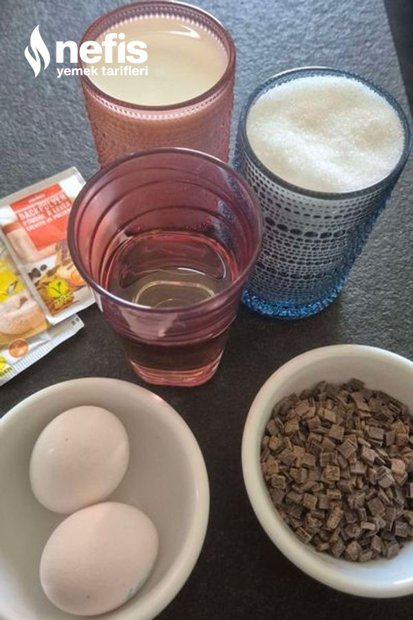 • 1 su bardağı damla çikolata (yarısı içine, yarısı üstüne)