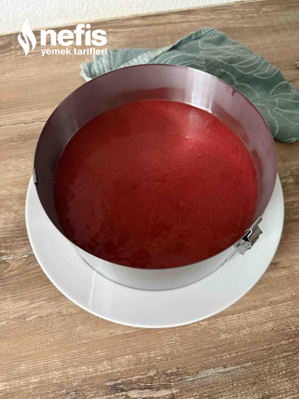 10. Hazırladığınız dolguyu kekin üzerine döküp yayılmasını sağlayın. Bir saat buzdolabında soğumasını bekleyin.