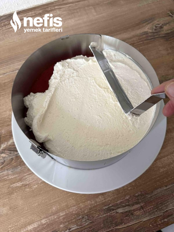12. Kremanızı çilekli dolgunun üzerine alıp güzelce düz bi biçimde yayın.