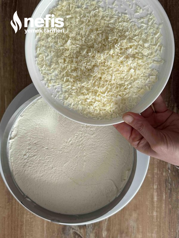 14. Servis etmeden evvel buzlukta biraz soğutmuş olduğunuz beyaz çikolatayı rendeleyip pastanızın üzerine serpin.