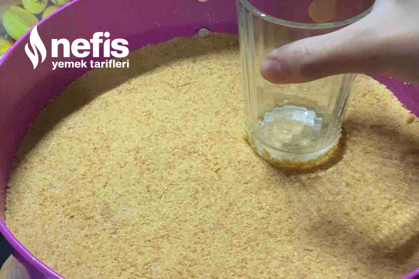 - Tabanı için bisküvileri rondodan geçirelim ve eritilmiş tereyağıyla karıştıralım.
