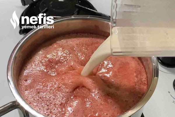 - Suyunu ve şekerini koyup kaynamaya bırakalım. Çilekler yumuşayınca nişastayı suyla inceltip ek edelim. Yoğunlaşınca altını kapatıp blenderdan geçirelim. Sosumuz hazır.