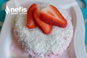 - Üzerine hindistan cevizi serpiyoruz. Çileği de dilimleyerek yerleştiriyoruz ve buzdolabında soğumaya bırakıyoruz.Afiyet olsun 🌸.