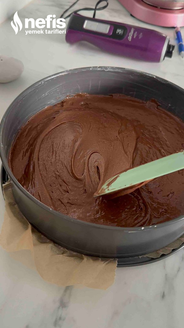 - Kek hamurunu yağlanmış kelepçeli fırın tepsisine döküp eşit bir halde yayın.