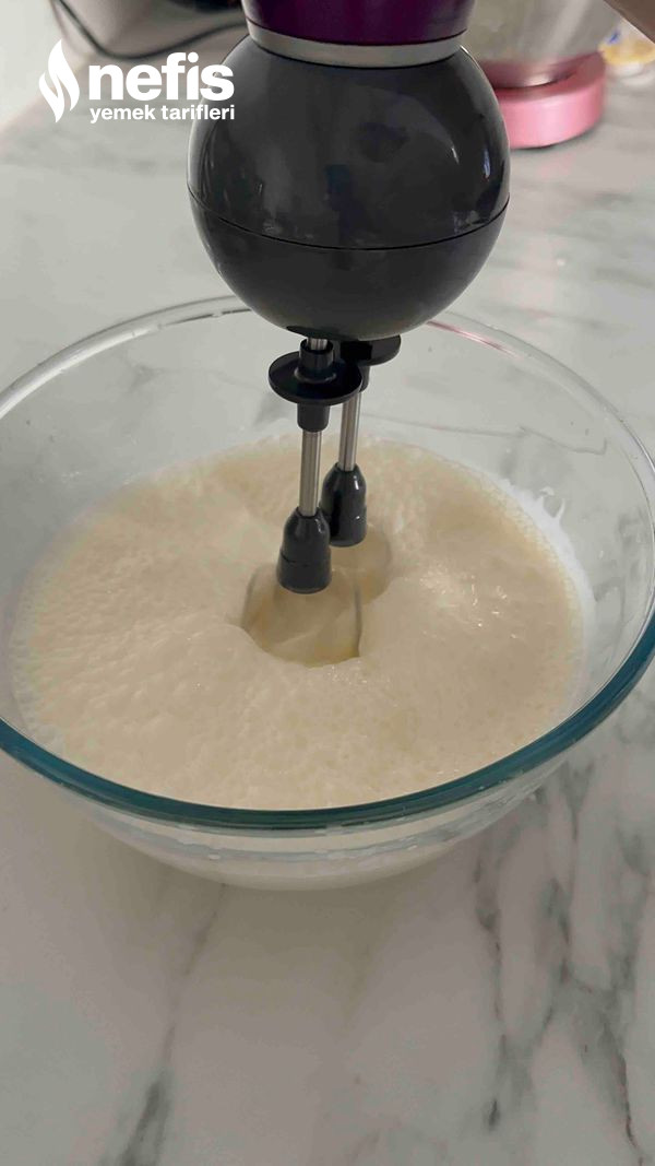 - Pastanın kreması için; sıvı kremayı biraz yoğunlaşana kadar çırpın.
