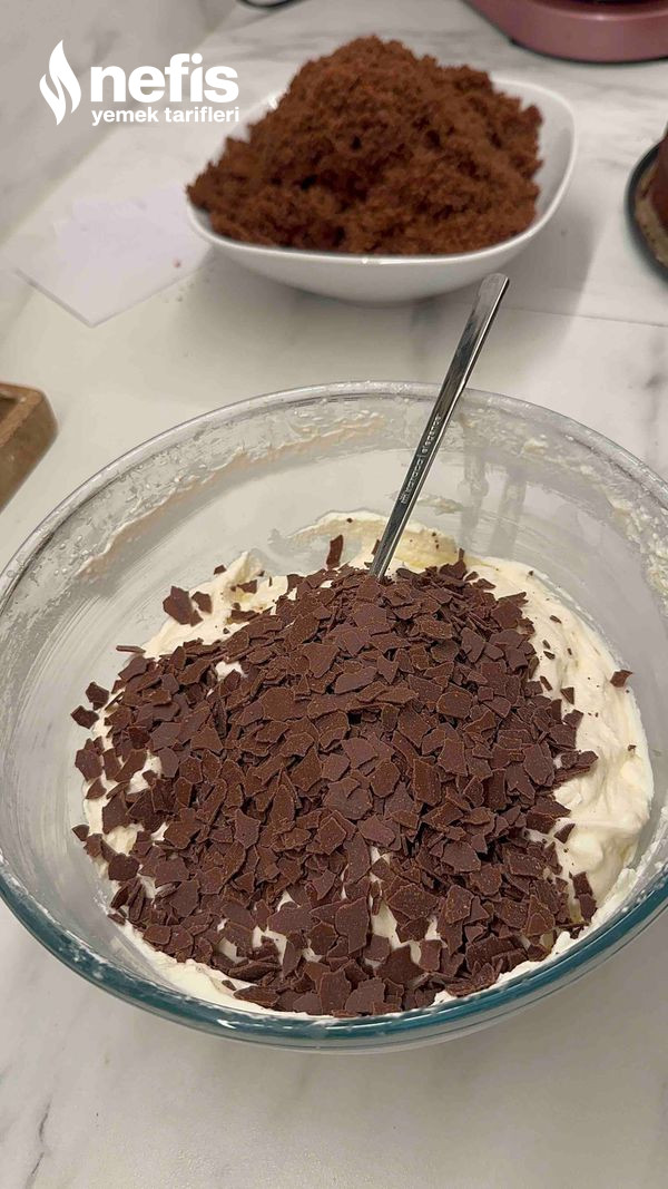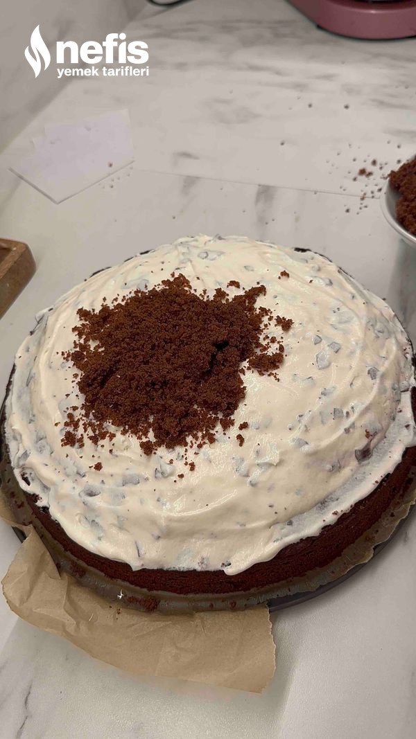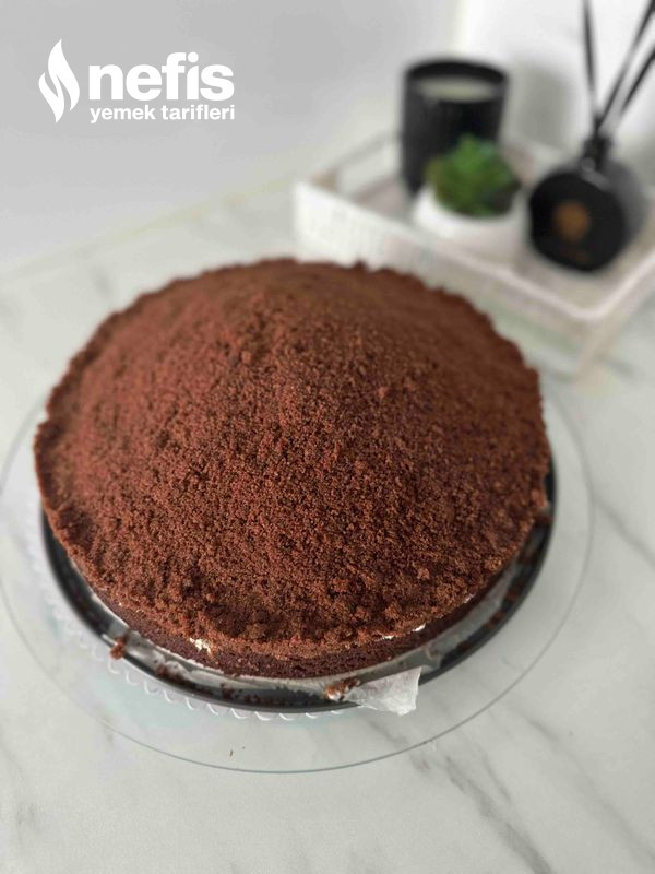 - Son olarak kremanın üzerine ufalamış olduğunuz keki serpip hafif bastırın. 1-2 saat buz dolabında dinlendirip servis edebilirsiniz.