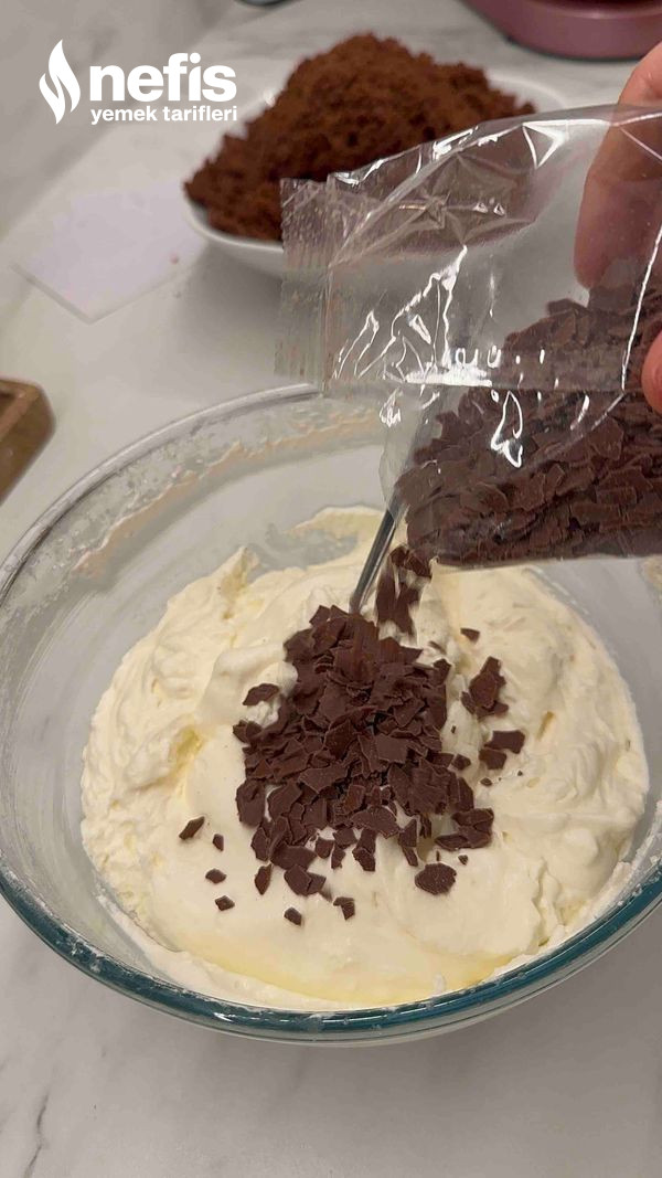 - Çikolata modülleri hariç başka malzemeleride ekleyip, tekrar koyu kıvam alana dek çırpmaya devam edin.