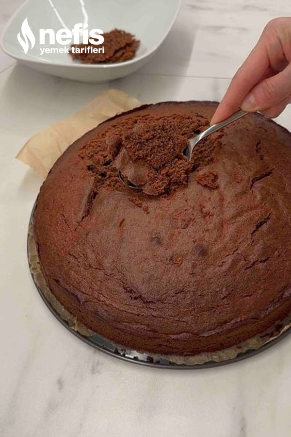 - Soğuyan kekin kenarını yaklaşık 2-3 cm hisse bırakarak alt tabanına ziyan vermeden ortasını bir kaşık yardımıyla oyup, oyduğunu kek modüllerini farklı bir kaba ufalayın.