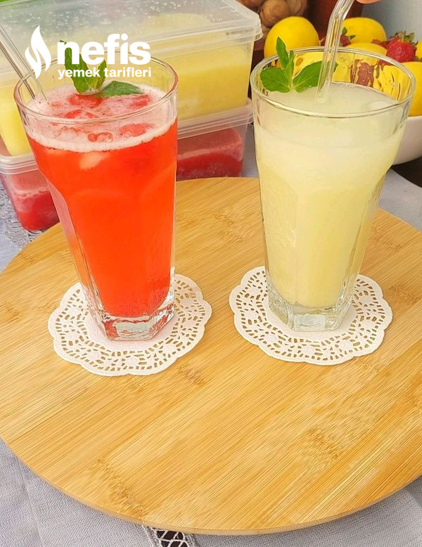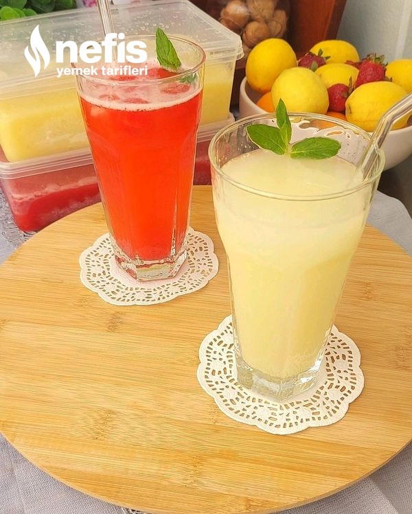 - Limonları sıkıp çileklerle bir arada blend edip, şekeri ekliyoruz. Şeker eriyene kadar karıştırıp, dondurucuya atıyoruz. Kullanmak istediğinizde çıkarıp, istediğiniz ölçüde sulandırıp içebilirsiniz.
