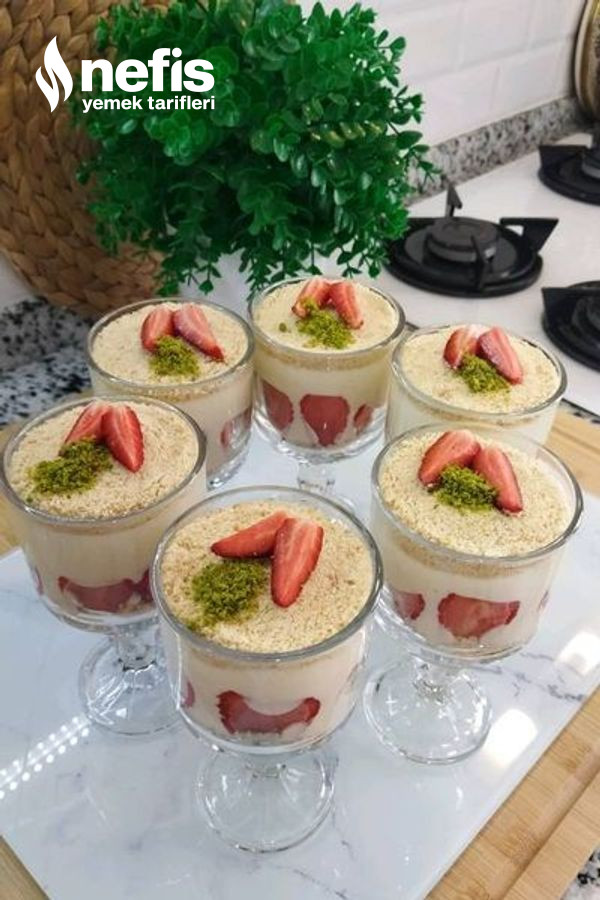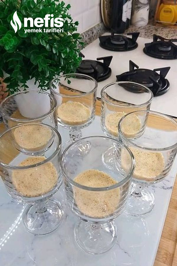 - Kremayı cuplara hisse edip en son üzerine tekrar bisküvi serpin.