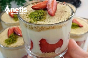 - Cuplara evvel bisküvi sonra kesilmiş çilekleri yerleştirin.