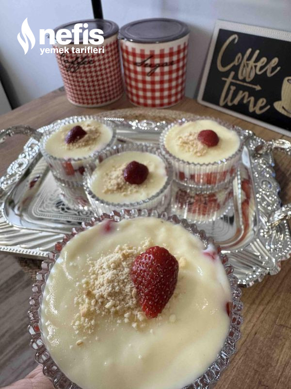 Not:Kremasını puding hafif ılıdıktan sonra ek edip güzelce çırpın. Soğumaya bırakmadan evvel en üstüne çilek ilave etmeyin. Bu onun kıvamının bozulmasına ve sulanmasına neden olabilir.