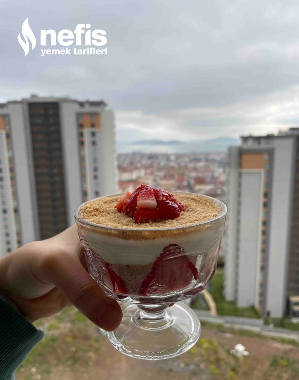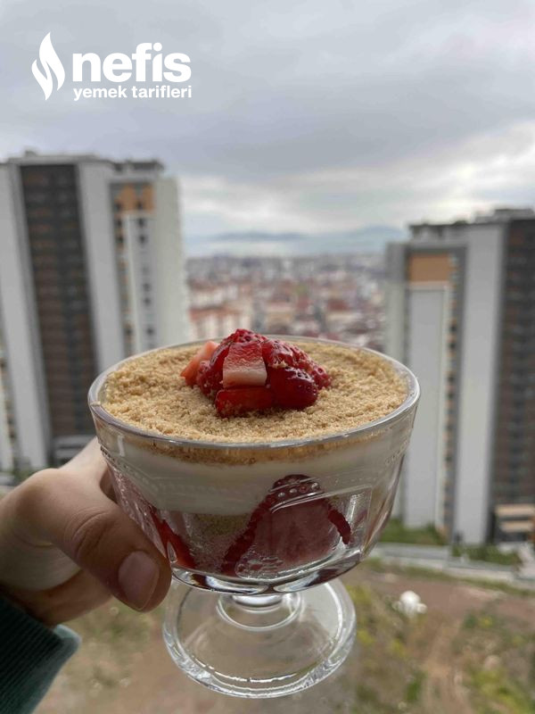 8. Dolapta uygunca soğuduktan sonra üzeri bir çilek ile süslenip servis edilir.