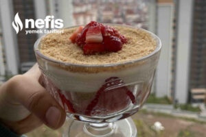8. Dolapta uygunca soğuduktan sonra üzeri bir çilek ile süslenip servis edilir.
