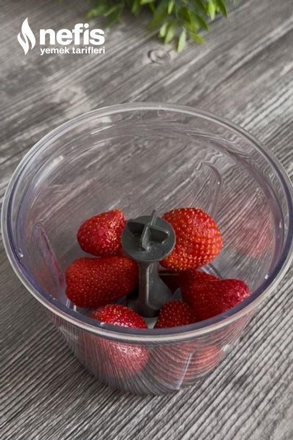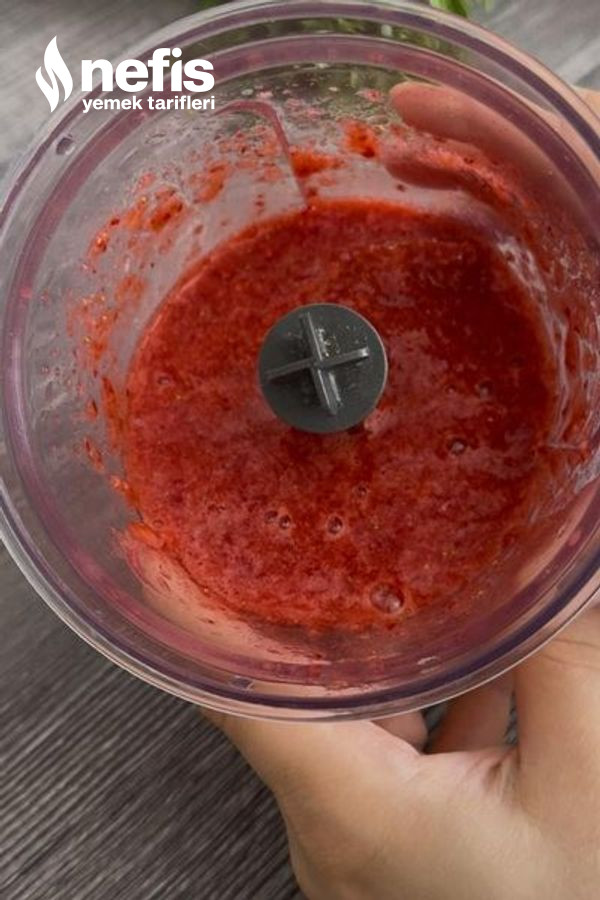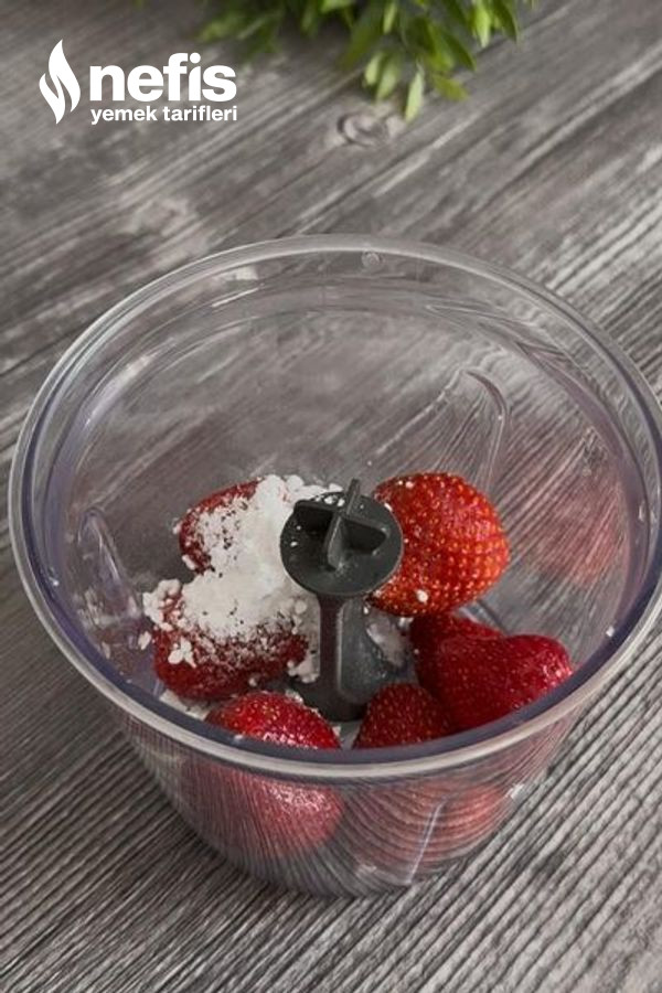 - Çilekleri ve 1 yemek kaşığı pudra şekeri mixerden püre haline getirin.