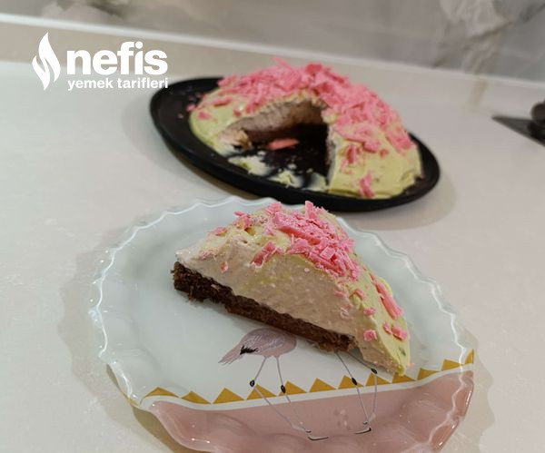 - Daha sonra pastamızı dolaptan çıkartalım üzerine fıstıklı ganajı dökelim ve istediğimiz halde süsleyelim afiyet olsun.