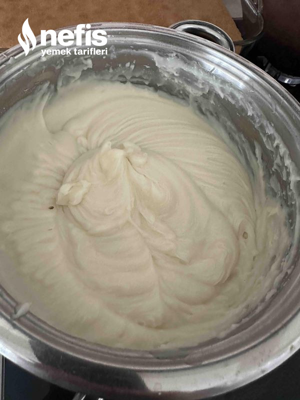 - Krema soğuduktan sonra kremşanti ile çırpıyoruz ,soğuyan kekimizin üzerine ekliyoruz.