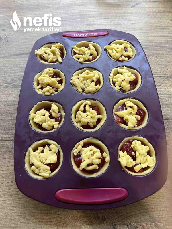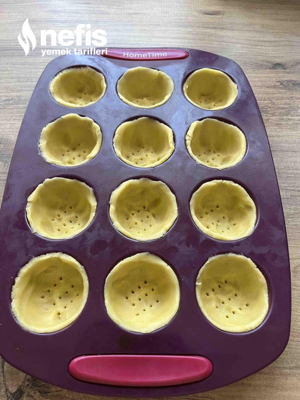 13. Kalan hamuru eşit modüllere ayırdığınız hamuru tart kalıbına yayın.