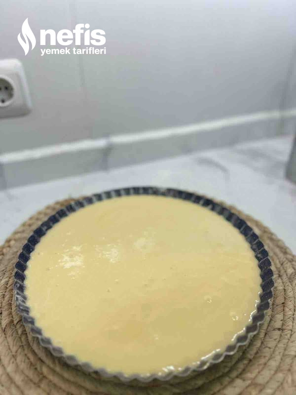 4. Yağlanmış tart kalıbına (ya da yuvarlak borcam/kek kalıbına) dökelim.