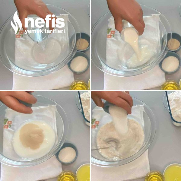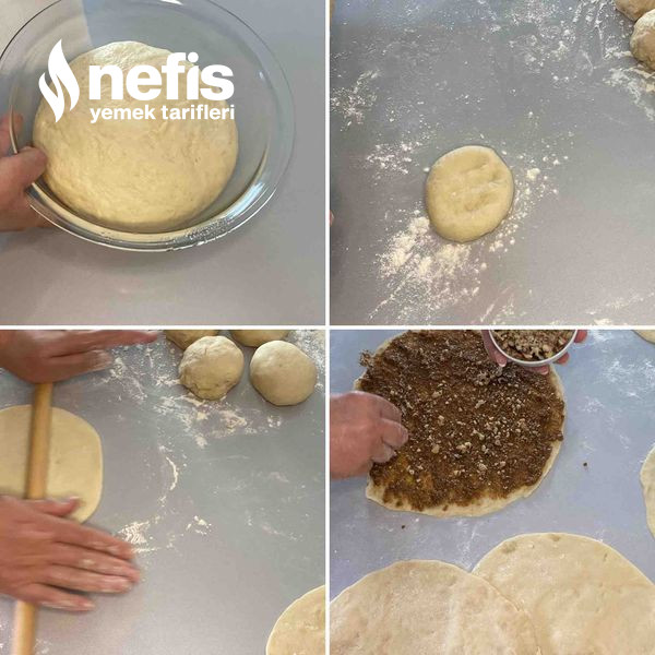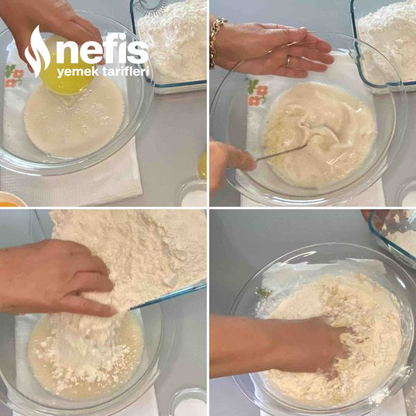 - Üzerine onumu ek ederek yumuşak ele yapışmayan pürüzsüz bir hamur elde ettim yarım saat dinlendirdim.