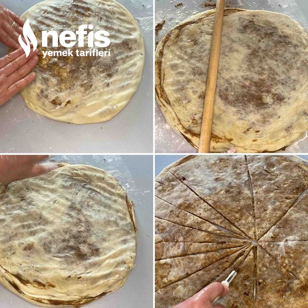 - Hamuru 8 kesime bölerek beze haline getirdim her bir bezeyi servis tabağı büyüklüğünde oklava ile açtım.