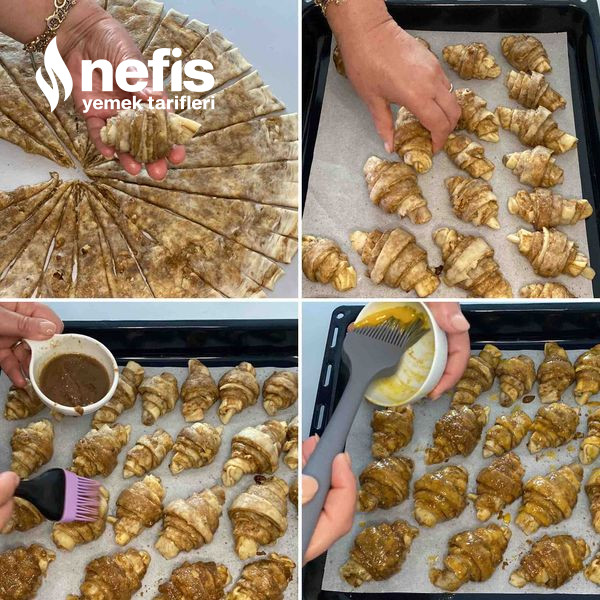 - 24 eşit modüle böldüm tüm ayrıntıları görüntüde görebilirsiniz tüm kestiğim kesimleri rulo halinde sararak yağlı kağıt yapmış olan tepsiye yerleştirdim.