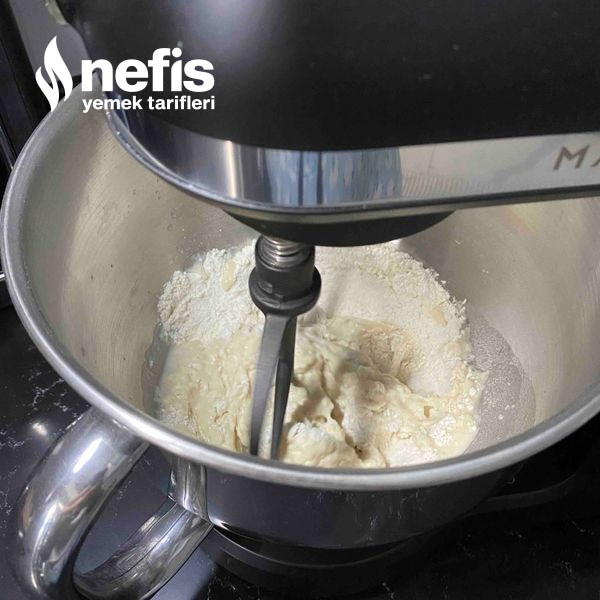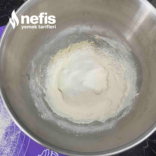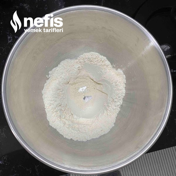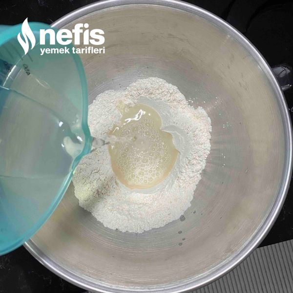 - İlk hamurumuzu yapıyoruz unu başta 2 su bardağı olarak koyun 1 su bardağına unu koyup kenardan bekletin. Hamurumuzun kıvamı cıvık olacak çok fazla yoğurmayın gereçler birbirine karışacak kadar yoğurmanız kâfi.