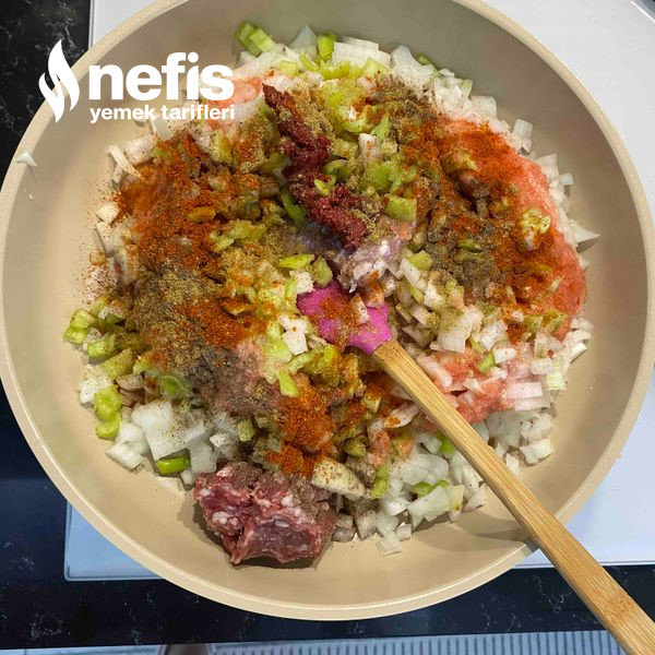 - İç harcını hazırlıyoruz ben tüm gereçleri koyup, sonra altını açtım isterseniz siz sıra sıra da koyup kavurabilirsiniz.