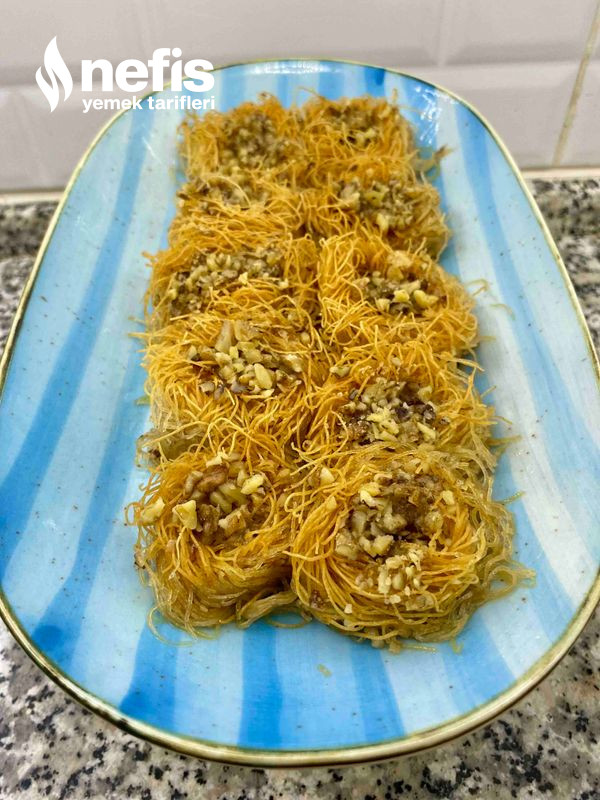 - Soğuk kadayıfa soğuk şerbet döküyoruz şerbet çekince kadayıfların ortasına ceviz dolduruyoruz ve afiyetle yiyoruz. Yeterli bayramlar.