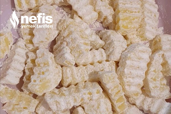 - Patateslerin üzerine nişasta serpelim karıştıralım ,her tarafını nişasta olsun.