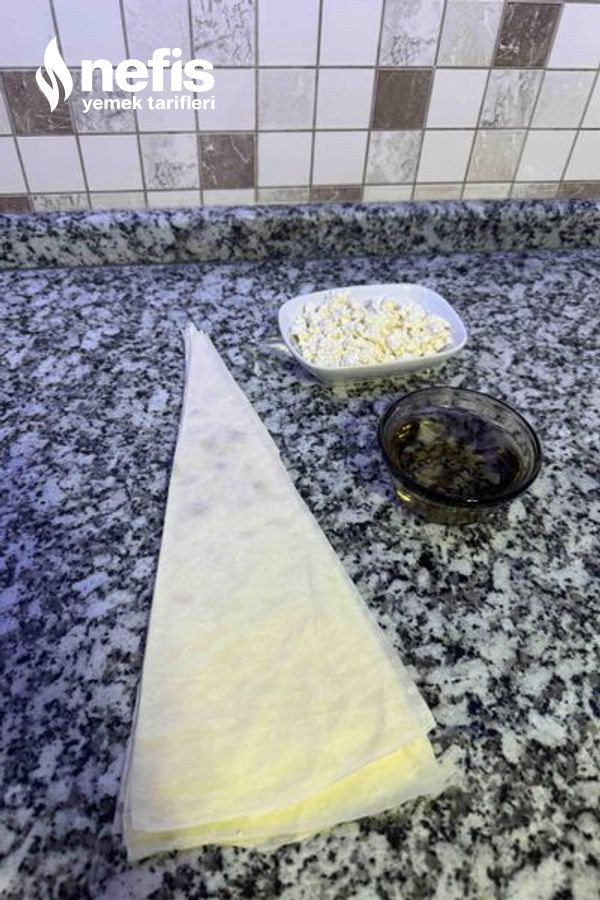 1. Yufkaları katından açıp üçgen halde kesiyorsunuz daha sonra göz kararı tulum lorundan içine koyup yanlardan katlayıp rulo halinde sarıyoruz .