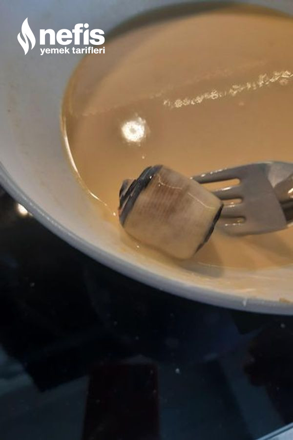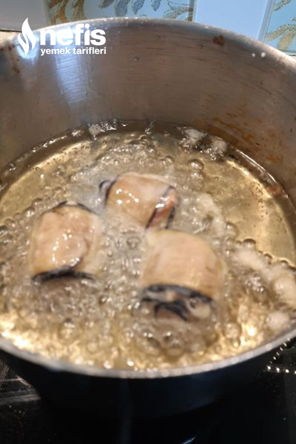 5. Daha sonra sos tavsmıza yağımızı ekleyip kızınca patlıcan ruloları sosa düzgünce bulayıp yağa atalım güzelce kızartalım .