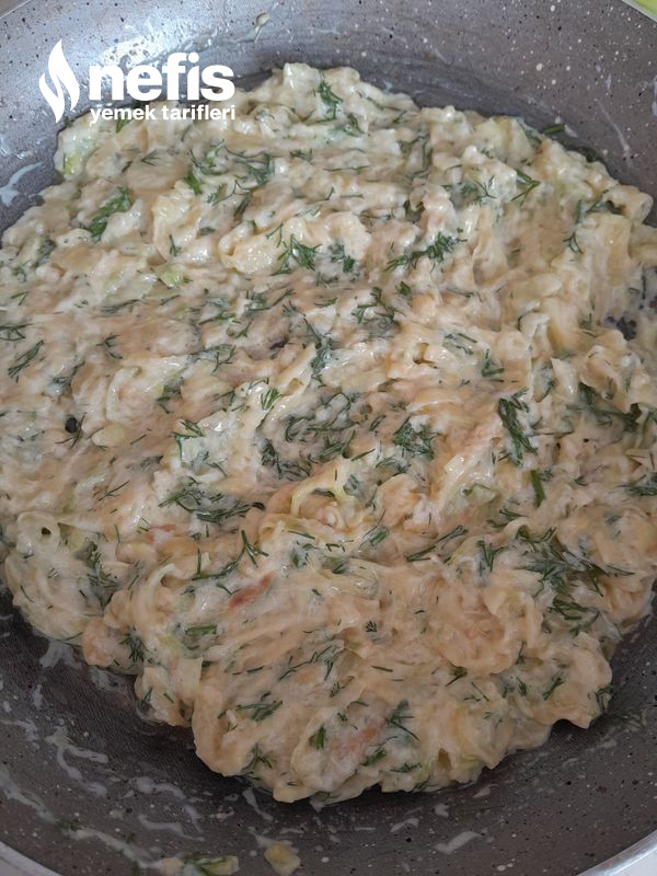 - Tarator için sarımsağı ve kabakları rendeleyip tuzunu ekleyerek zeytinyağı ile kavurun.