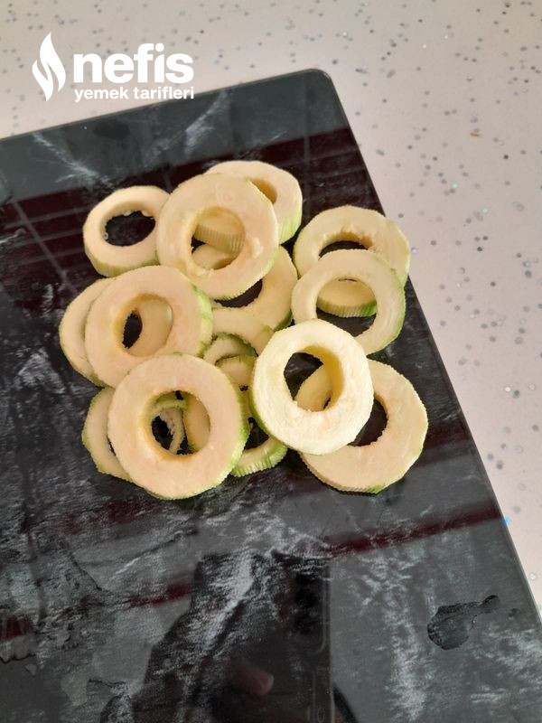 - Çıtır kabak için orta kalınlıkta yuvarlar doğradığınız kabakların içini görselde ki üzere oyun.