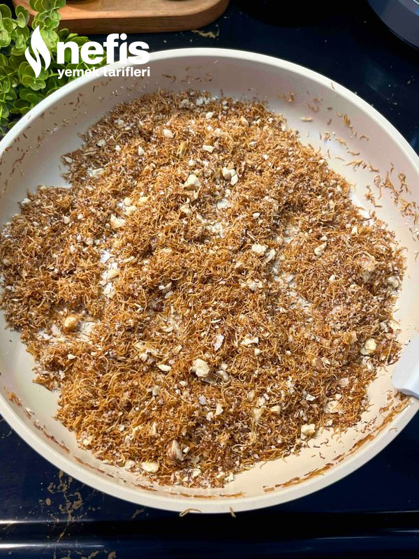 3. Kadayıfı ekleyip daima karıştırarak kızarana kadar kavuralım.