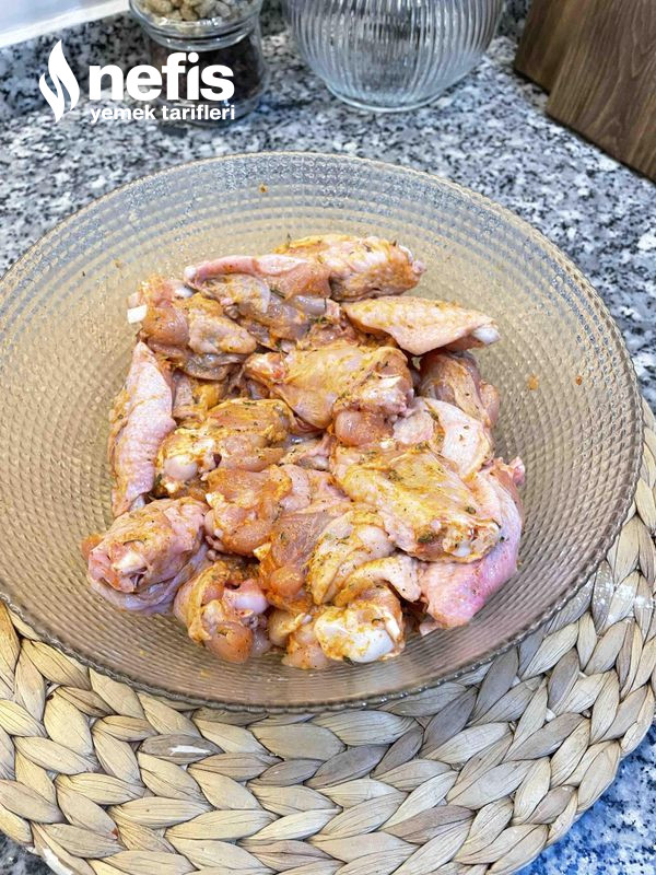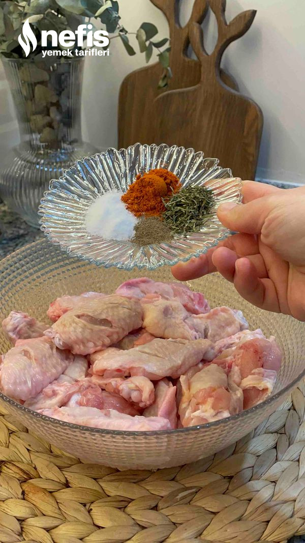 1. Kanatlara çizikler atalım. Üzerine baharatları ve kabartma tozunu ekleyip karıştıralım.