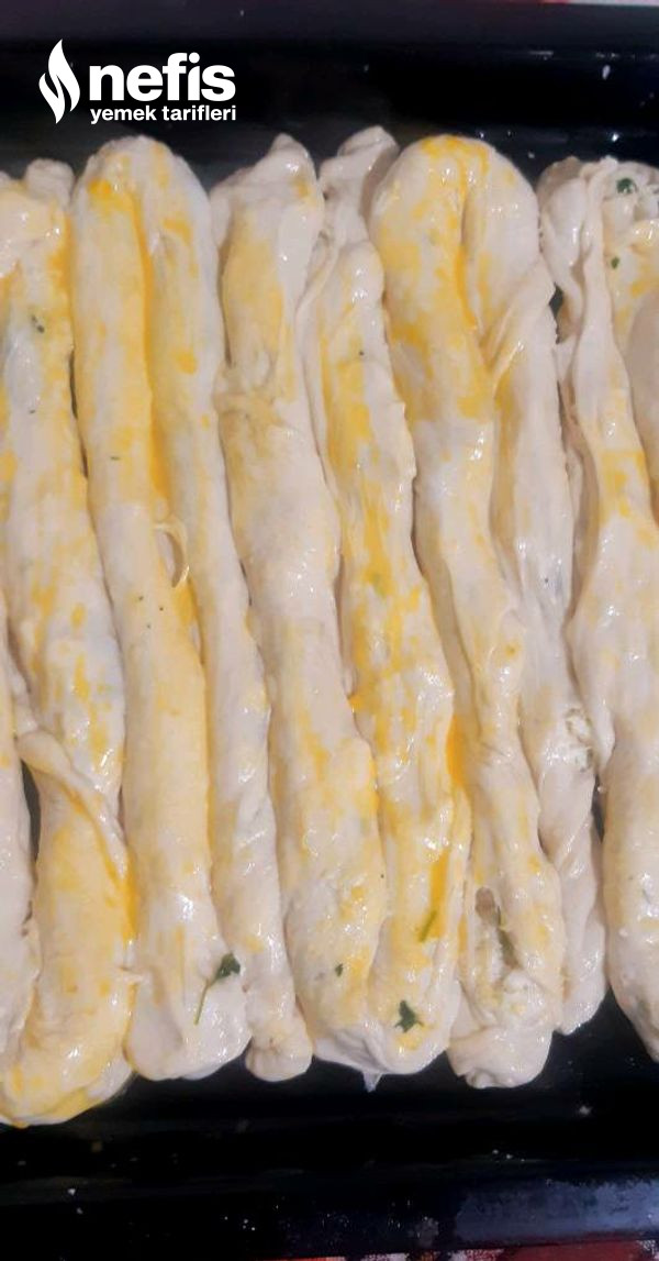- Dinlenen bezeleri düz bir tezgahta elle yavaşça ince olana kadar açalım ve içine peynir harcını koyup tepsiye koyalım ve bittikten sonra yumurta sarısını sürüp isteye bağlı susamda koyun.