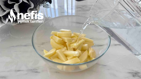 - Patateslerimizi suyun içerisinde on 15 dakika nişastasının çıkmasını bekleyelim.